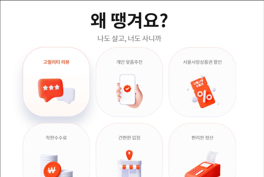 '땡겨요'는 지역화폐 연계 할인 서비스를 통해 '가치 소비'를 추구하는 소비자들을 공략하고 있습니다. 현재 79개 지역화폐와 연동하여 할인 혜택을 제공하고 있으며, 서울에서는 16개 자치구에서 '땡겨요' 전용 지역화폐를 발행하여 추가 혜택을 제공하고 있습니다.